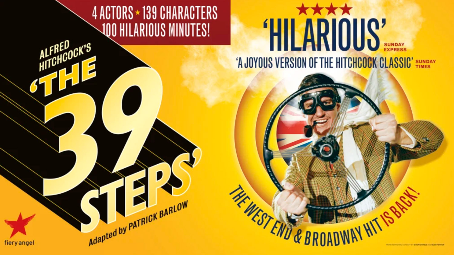 A story that you know and love, written by John Buchan and famously adapted to the screen by Alfred Hitchcock, has taken to the stage. The 39 Steps has arrived at the New Theatre in Cardiff and it promises ‘100 Hilarious Minutes’ with just 4 actors playing 139 different characters; it’s a side-splitting night out that you don’t want to miss. This Patrick Barlow adaptation of Hitchcock’s classic spy thriller is Olivier and Tony award winning, and it’s easy to see why. We follow hero Richard Hannay as he encounters murders, double-crossing agents, and so much pandemonium as he is falsely accused of a murder after accidentally becoming involved in a government secret.