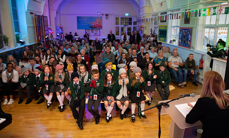 Local families from Porth in the Rhondda were treated to an extra special festive evening last night, as M&S staged the premiere of its Christmas Food TV ad in the school hall of Ysgol Gynradd Llwyncelyn. The primary school’s award-winning choir provides the soundtrack to the ad with a new arrangement of Fleetwood Mac’s Albatross, the iconic tune behind the ‘This is not just any’ campaign.